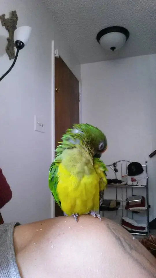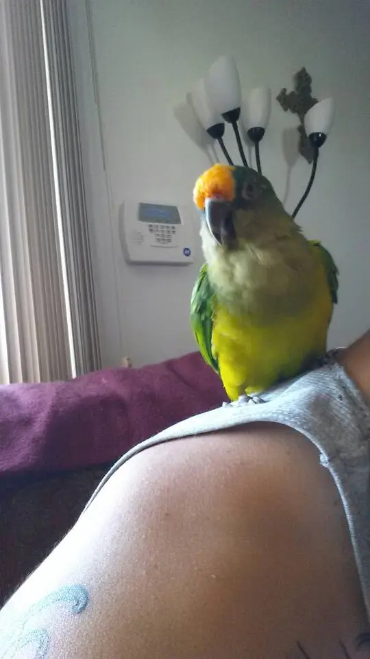 Hello everybody I am new to the forum and new on owning a peach front conure. He is 9 years old and loves to talk. So far I am happy with him. What do you guys think.