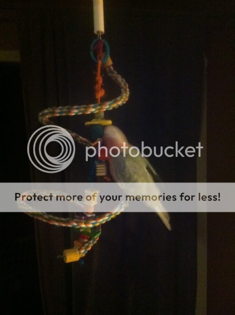 My fiancé and I made this tonight! Wood from an apple tree, vet wrap and toys! Cost $23!!! Richard just sits on the branch closest to my chair and screams at me.... Hope he learns to like it.... Anything I can do to help him like it? I am going to add a couple treat cups and a few more toys tomorrow, anything else I can do?