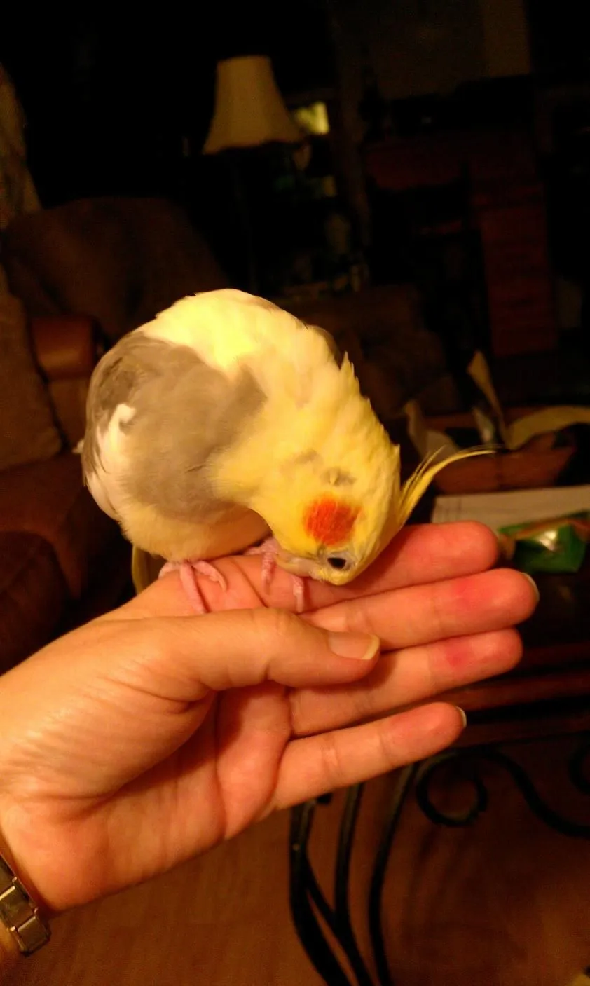 about 6 weeks later. I have no plans to breed them, I was just looking for a tame, good-natured cockatiel as a companion to Jax. Turns out they can't stand each other, go figure. We've all loved having the cockatiels so much that I decided to add to my flock. After months long searching, I finally brought home a young sun conure last week, and my daughter, who lives at home, fell in love & purchased a young Quaker parrot, from the same store, a few days later. I'm sure I'll be hanging out here often & asking many questions!