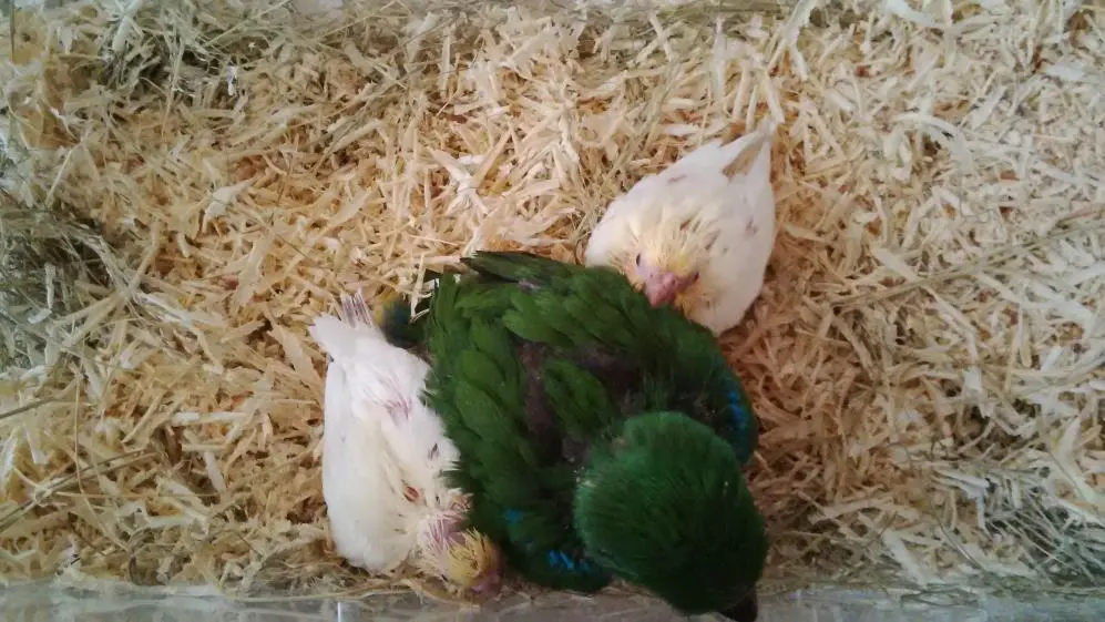 Hi All I'm new to this i love birds a have about 9 pairs budgies 2 baby cockatiel's and a baby Eclectus male recently bought the 2 cockatiel's and Eclectus.I am trying to figure out how old he is. The pet shop i bought him from says 5 weeks but i don't think he is i think he may be older. Help will be appreciated here is a pick of him dont mind the Cockatiel babbys they want heat..lol hope the pic helps