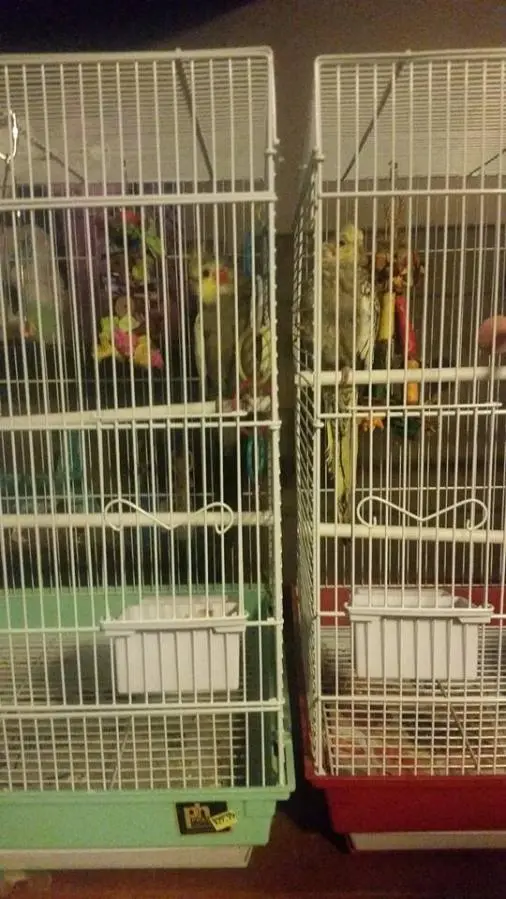 So far the only experience with any bird is with Zuri, my roommates Scarlett Macaw. She has lived with me for almost a year now and still trying to make a good relationship. Today my boyfriend and I adopted two male cockatiels, a father and son, named Gomez, 2 or 3 years old, and his son Fester, almost 1 year old.