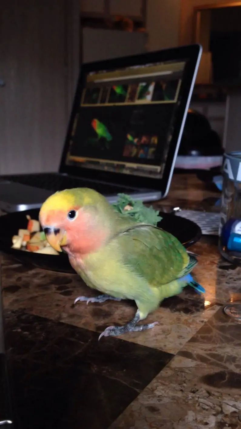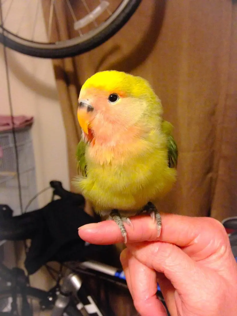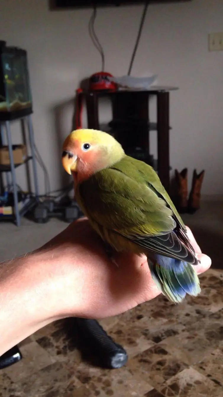 I got this little guy (or girl) about a week ago! He has been acclimating well and is very happy here! I was hoping you guys could help me identify the type of love bird he is? I have named him/her Pippin!! Also, he is only about 7 weeks old (according to the person I got him from) and I have never weaned a bird before...I have been allowing him to have formula that I got from the pet store (the brand is Exact) twice a day (or whenever he gets rowdy which usually means "feed me") I have also had a dish of bird food in there and been offering fresh fruits and veggies every day. Problem is he doesn't seem interested in neither the bird food or the fresh food I give him! I got him to eat a small bit of kale yesterday that I wove through the bars of his cage. Any suggestions on how to wean him from the formula? And also, what type of pellets should I get him? Currently I just have bird seed for love birds but I know I need pellets. Just don't know what type.