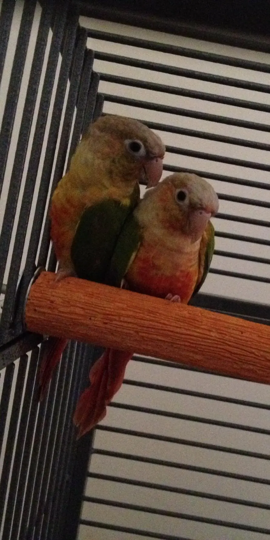 On Saturday we decided to purchase a pair (sexes unknown) of Pineapple green cheek conures. We have been told they are roughly a year old although I suspect they are a little younger, they were apparently aviary bred so a little shy at the moment.