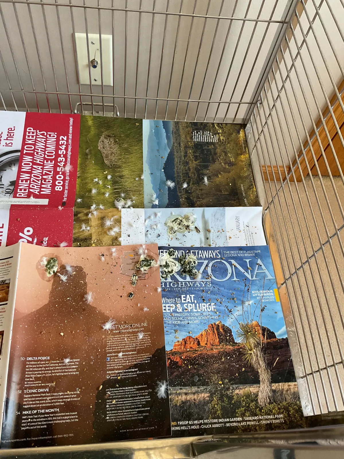 it’s been barbered but he actually has a tail. I’ll take the win in the situation. He has red & blue feathers on his wings. When I adopted him he didn’t have these feathers so I didn’t even know Ekkie’s had these colors. Nico was adopted fairly quickly, and unexpected so I didn’t get a lot of time to research on Ekkie’s.