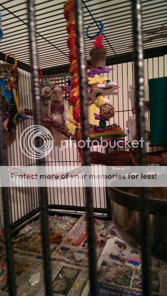 If anyone saw my thread, http://www.parrotforums.com/general-parrot-information/55523-so-much-work.html, and the pictures I posted last night you might notice that Folger is not wearing a collar. Right now he has been in his cage for a little over 24 hours without a collar! Instead I have noticed some torn up foam and a decapitated dinosaur