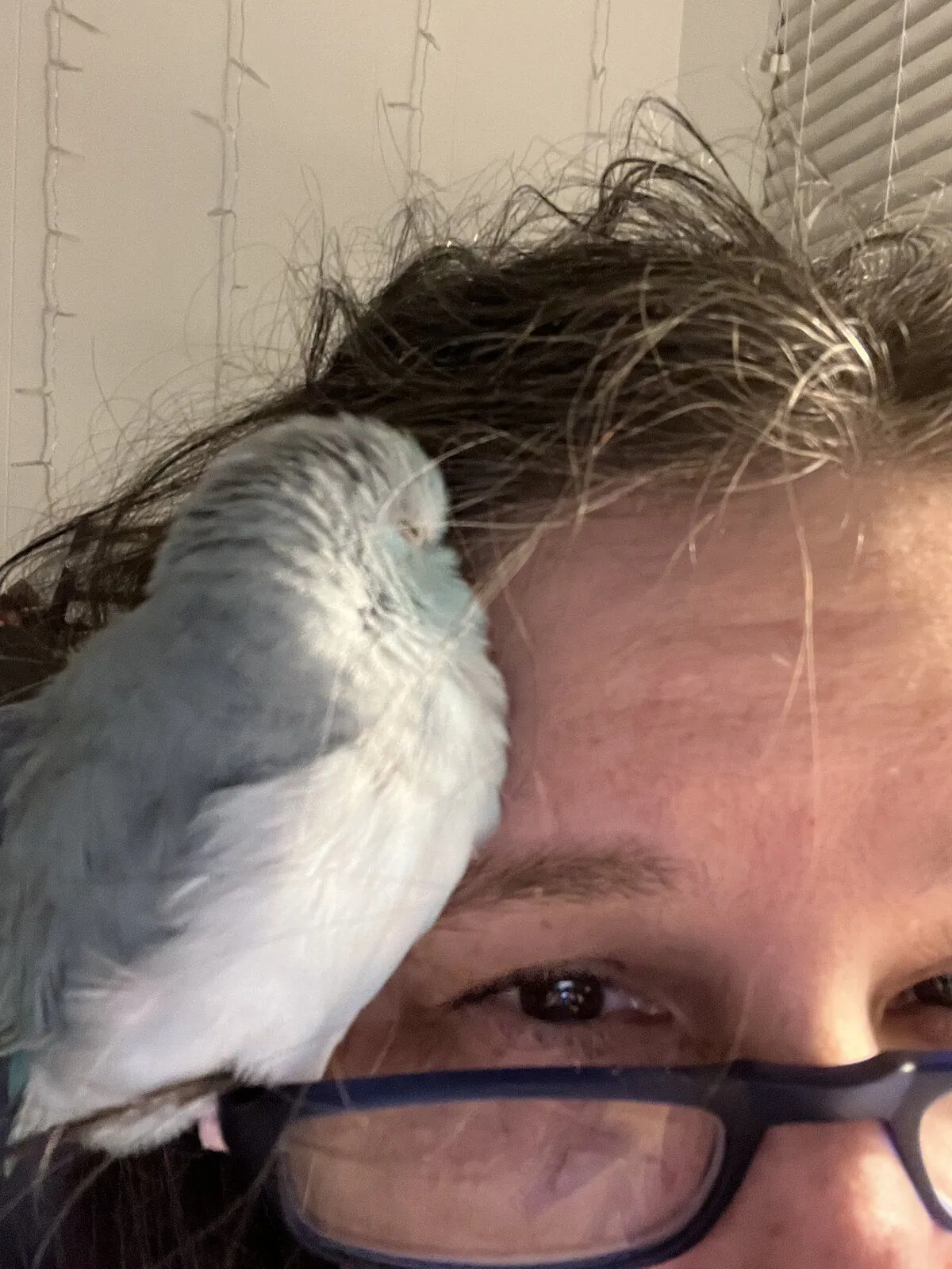 Bumble definitely slows down, fluffs up, and gets kind of snoozy approaching sunset. It's the only think I like about winter - she's 100% sweet until she's ready for bed (and then she gets bitey). It's nice quiet bonding time with her.