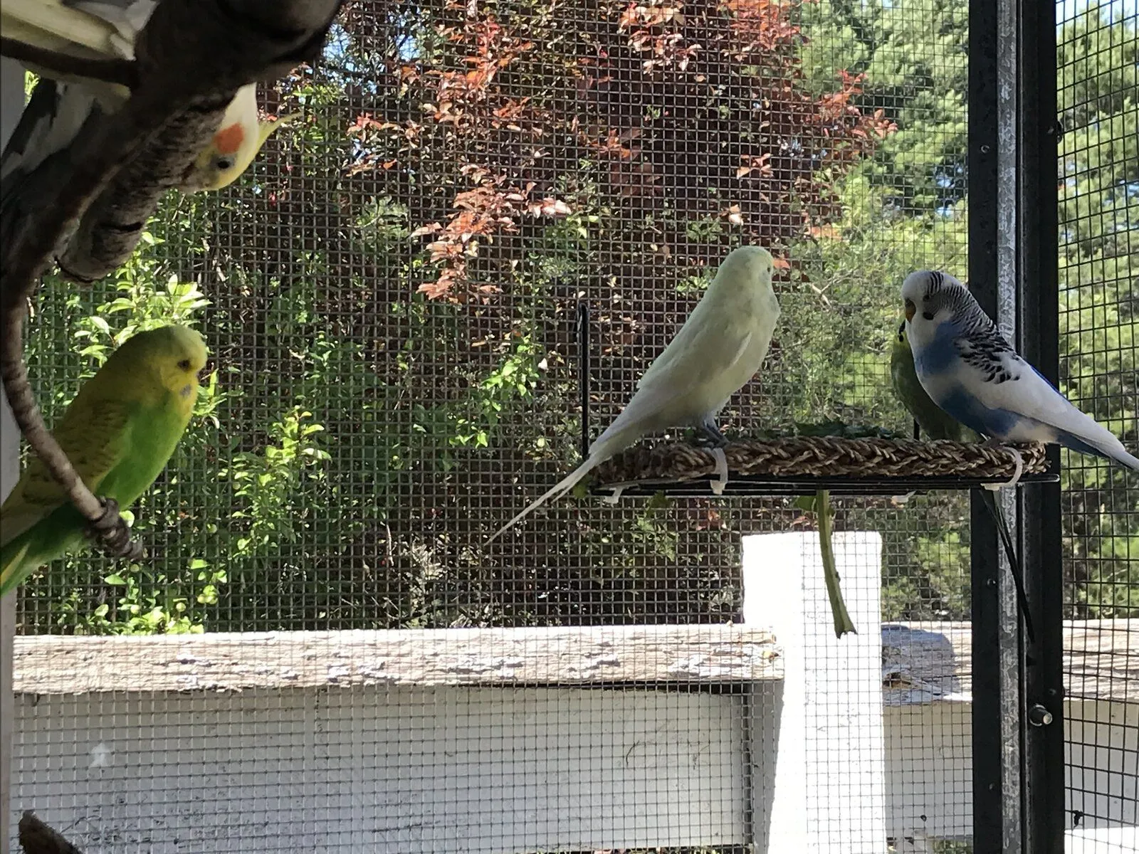 - Fang ({ab}normal grey cockatiel), Valentino (budgie), Jem (cinnamon cockatiel), Lovejoy(varied lorikeet), Peach (princess parrot)