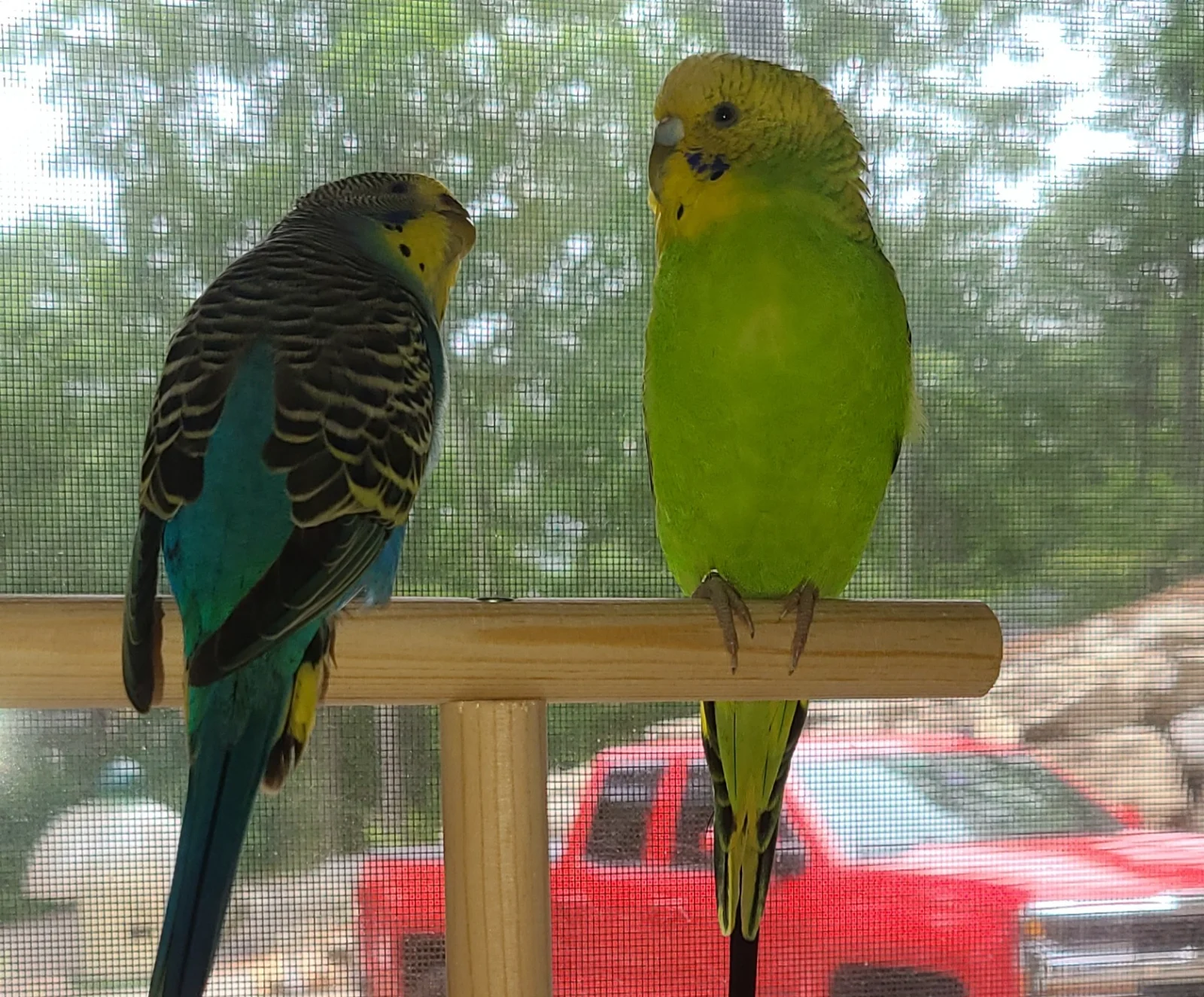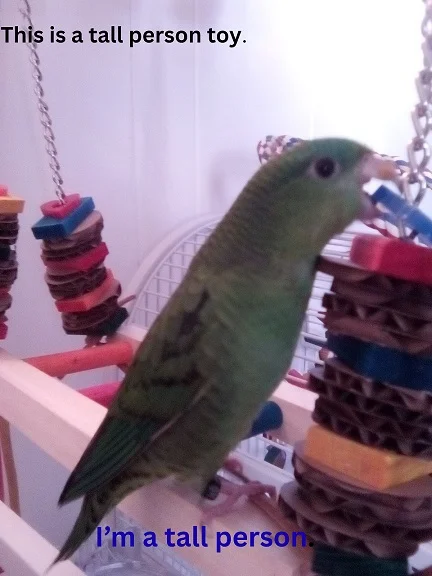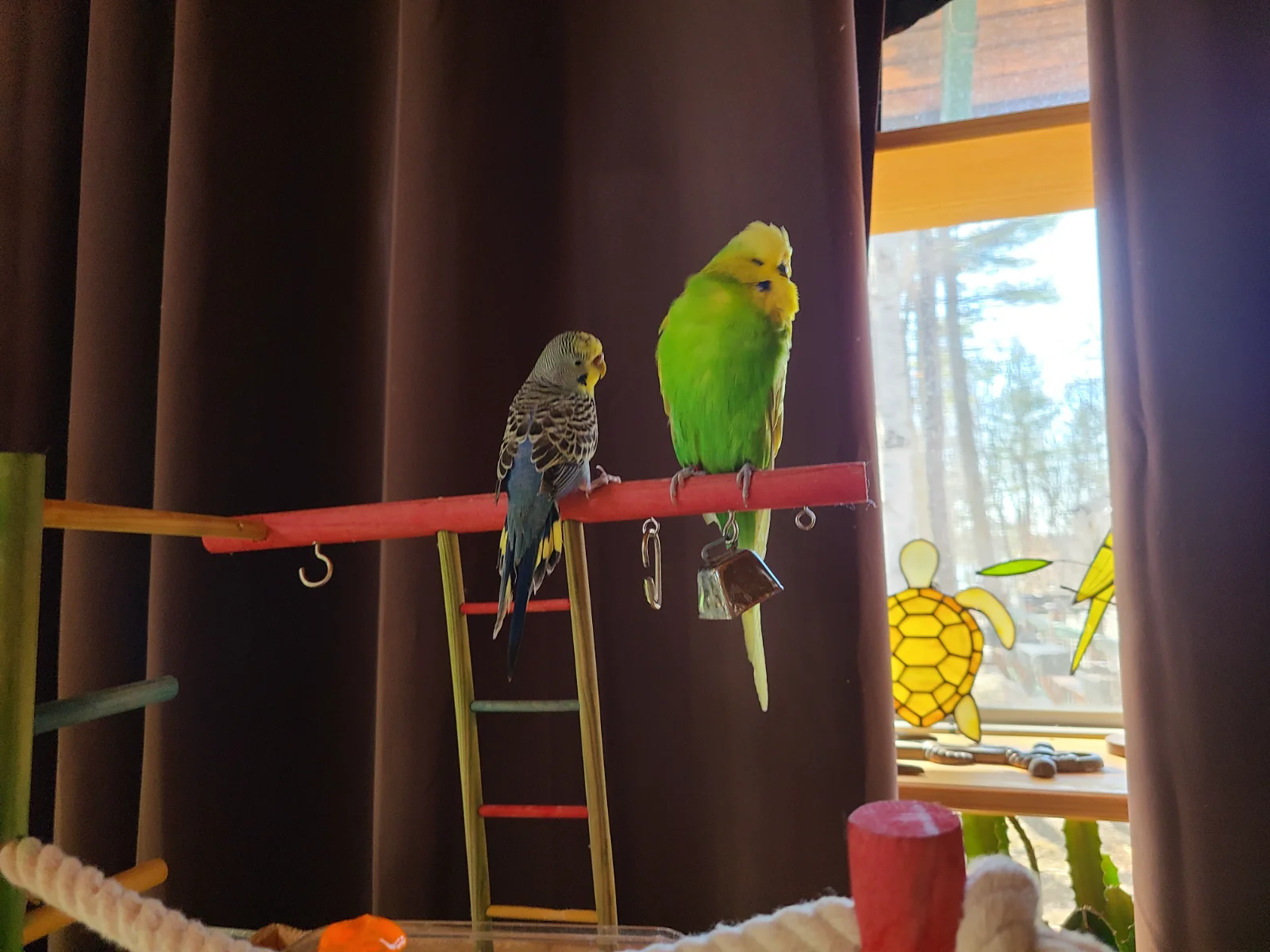 - Fang ({ab}normal grey cockatiel), Valentino (budgie), Jem (cinnamon cockatiel), Lovejoy(varied lorikeet), Peach (princess parrot)