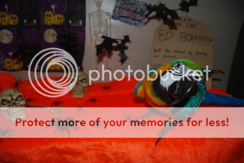 Please post a picture of your bird (with or without you) in either a Halloween costume, near/in/around Halloween decoration. :43: :43: :43: