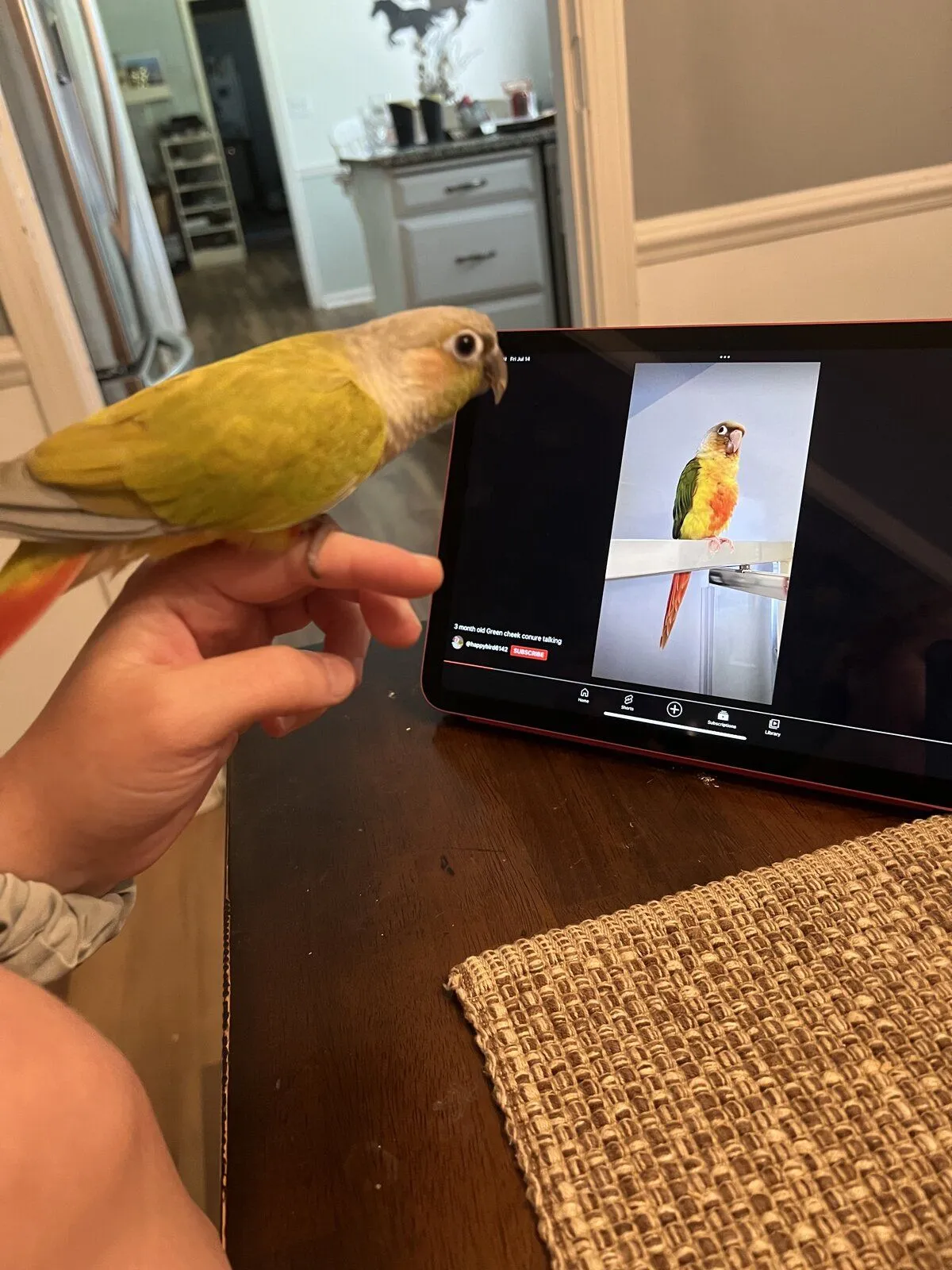 She practiced some of her tricks with her and said Ona was "incredible at them". She even took her on a walk in her backpack! Apparently Ona also liked her roommate and flew to him a couple times when he would leave the room. The sitter said "she is definitely the type of bird that wants to be involved in what you are doing and with you." Sooo true.