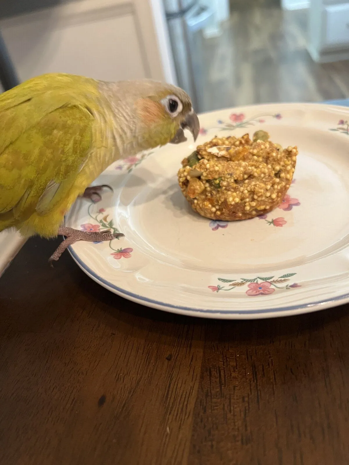 It is a hit! She likes this a lot better than previous birdie bread I’ve made her.