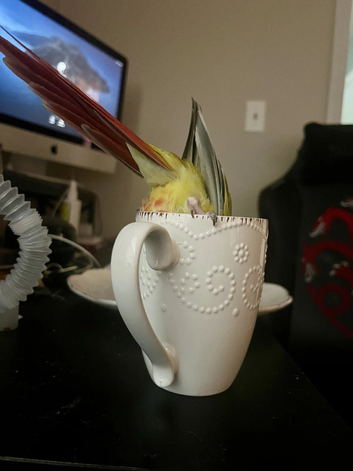 Oh I'm SO relieved Ona's doing so well!! She handled that treatment like a little champion.After zinc toxicity treatment, little miss has been doing great and her feathers are coming back in really well. Today, she made a new friend!!!
