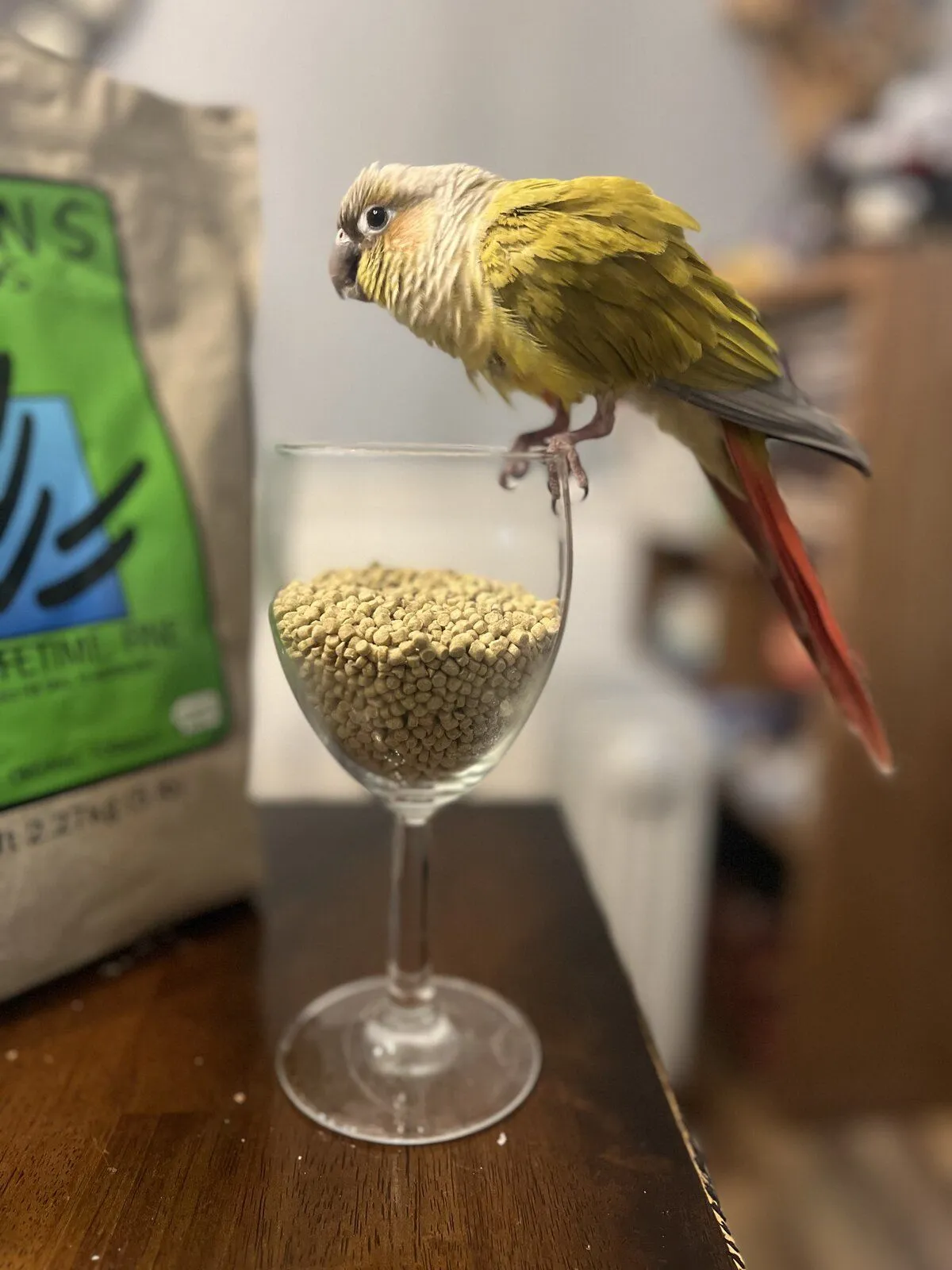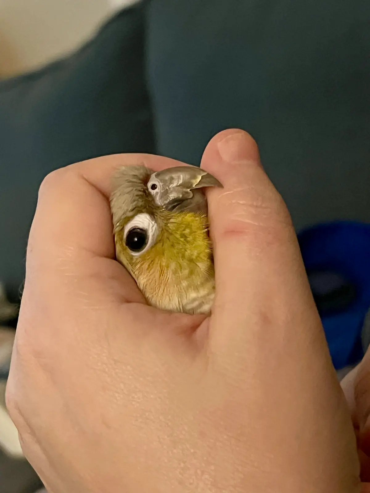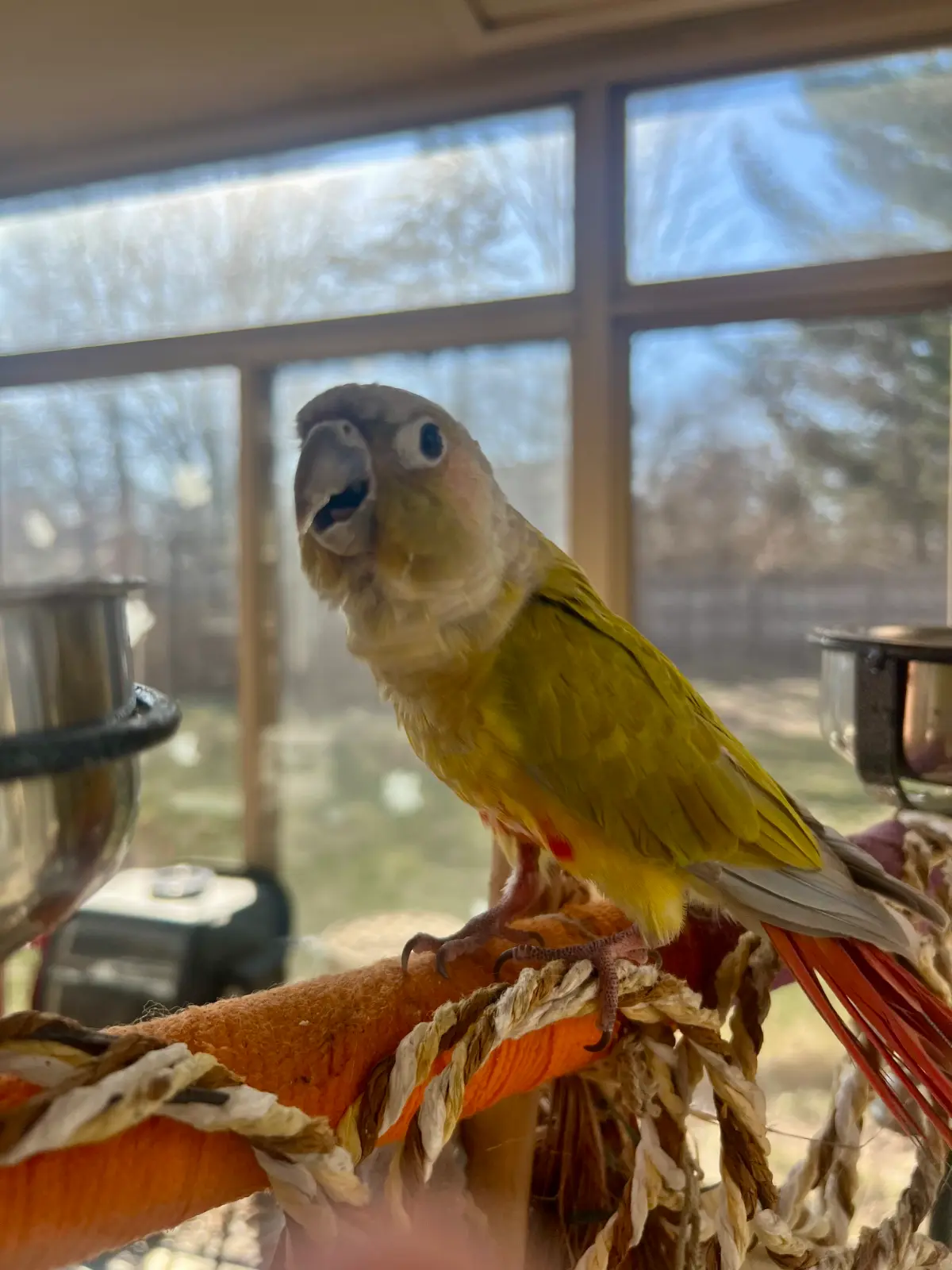 The weather is really nice today and Ona loves going in the sunroom with me to watch the outside birds. So earlier today I wanted to take her in there while I worked to let her enjoy it. I had my youngest dog out in the room with me at the time, and he and Ona are never allowed out together. So to make the switch-around easier I asked my husband to put Ona in her backpack while I took the doggie upstairs. (Welcome to my daily crate-and-rotate life!) She was being a little stubborn about wanting to go in her backpack so he told her “Ona, you’re going outside” and she went in. Then she got impatient waiting for me to come get her. According to my husband she said: “Daddy…… Outside….. No ********” - I unfortunately can’t post the full phrase here but you get the idea