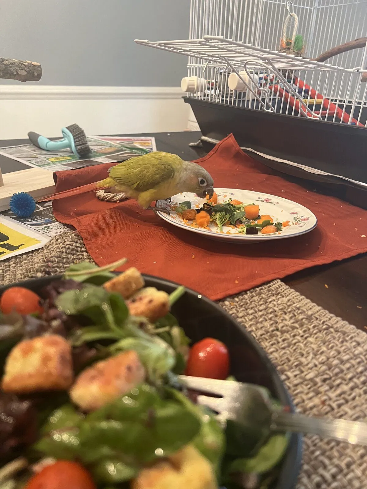 We’re working on a balance of in and out of cage time to get her acclimated to everything. She’s taking it all in like a champ.