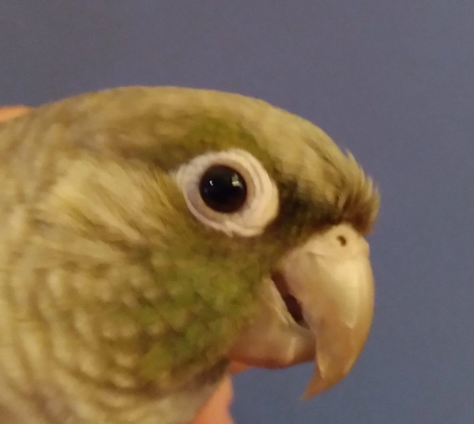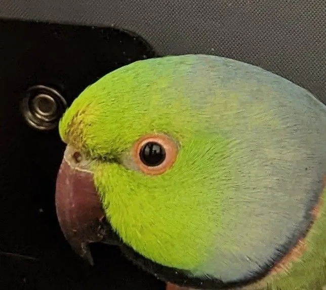 8 April after a few days of doxycycline - harder to compare swelling around nares/sinuses with fluffy feathers in this one, but inflammation in eyes and lack of distinct iris is still noticeable