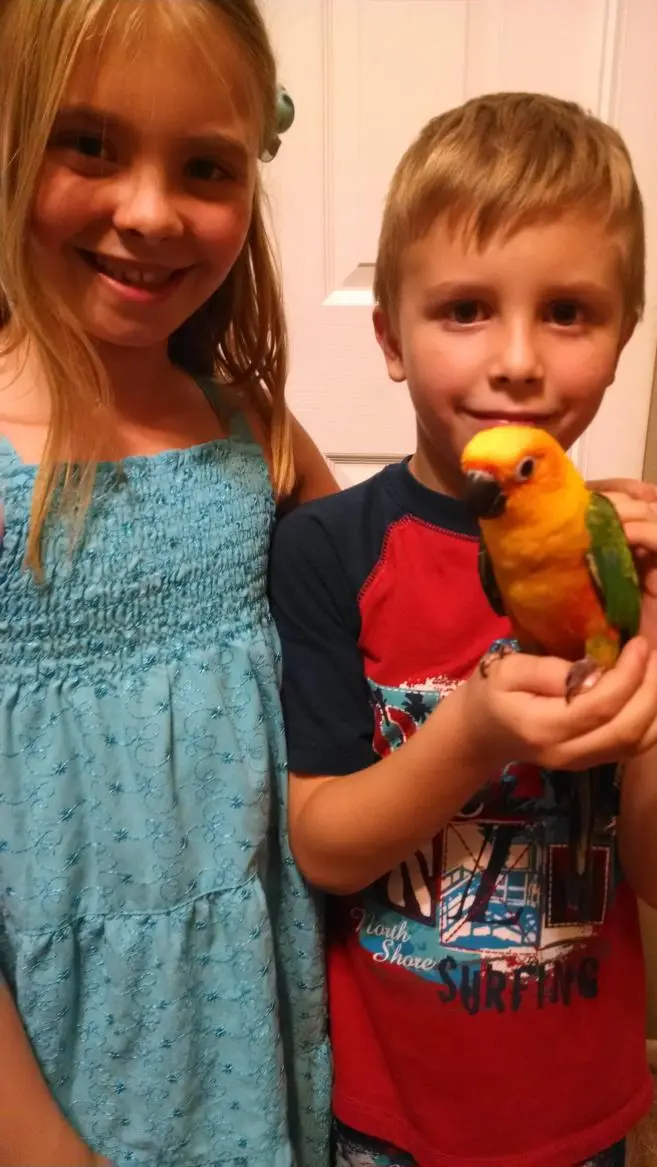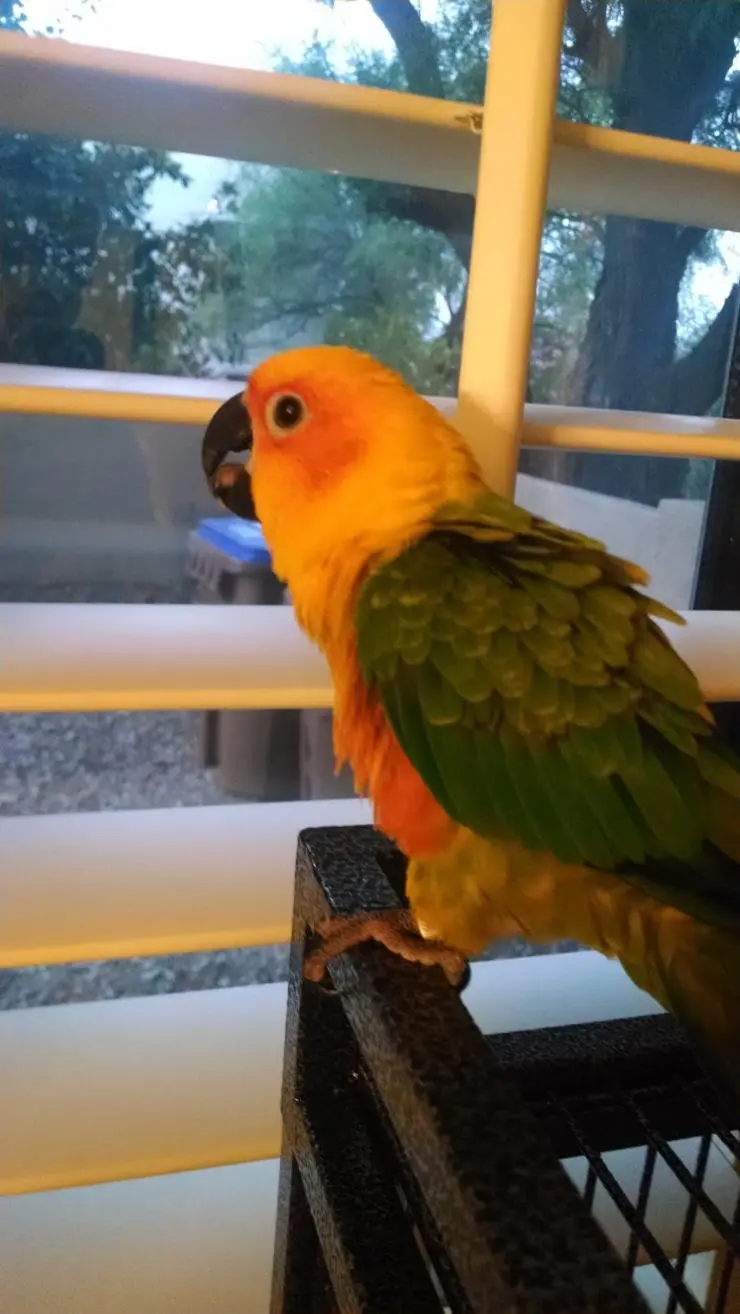 Thanks to Gerry and Dee @ AZparrots</AZParrots><meta><title>AZParrots for our beautiful Sunday Conure, we picked up yesterday! Feathers seems to be settling in just fine so far!