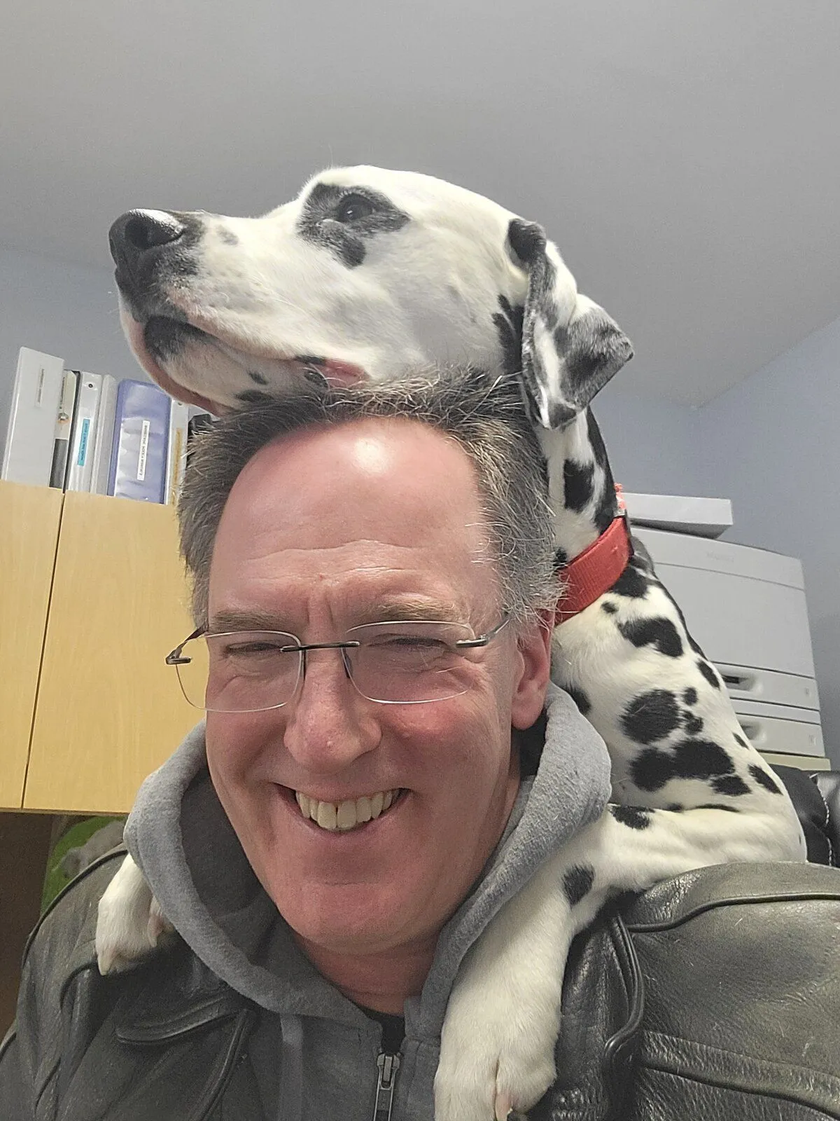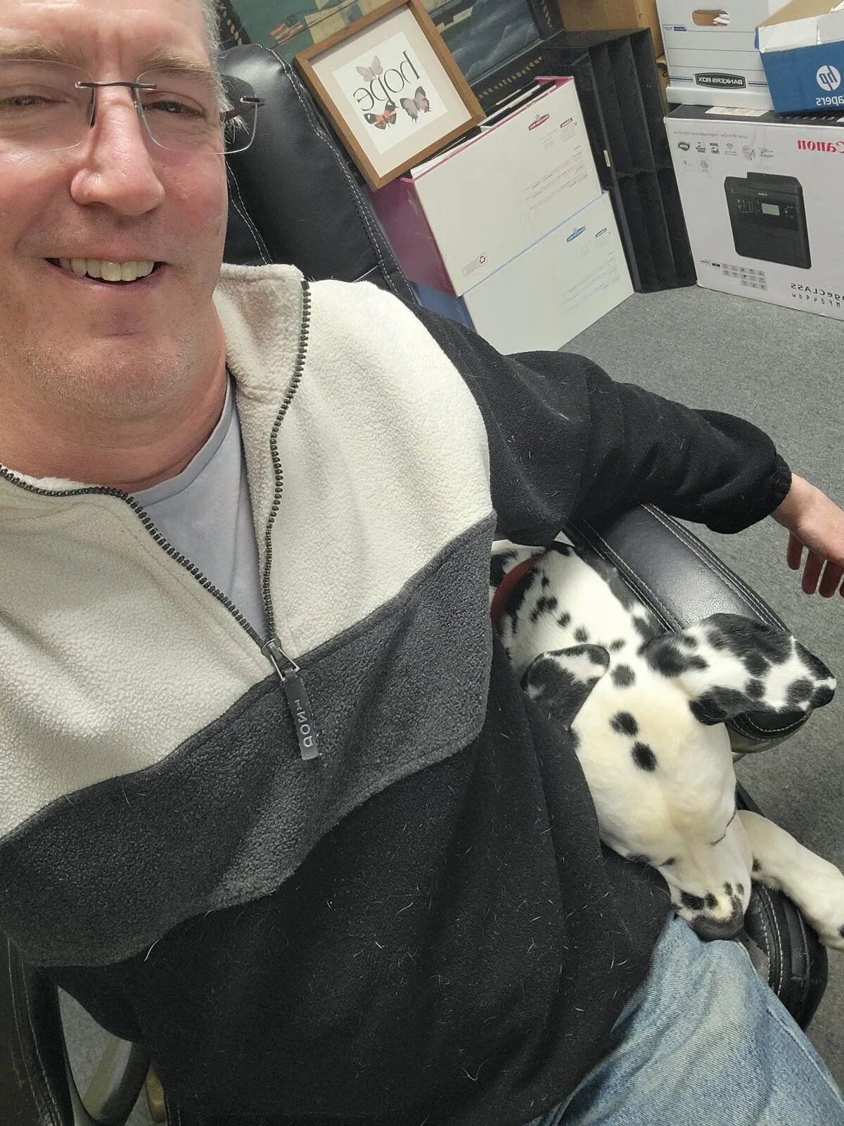 Like I said, he loves to be close, so he's there behind me in my chair. A. LOT.