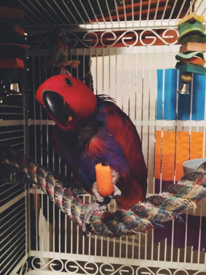 Here's our new Vos girl. She'll be two on April 15. We got her from a woman in Maryland who originally bought her from a breeder in Michigan, Susan's Parrot Place. Has anyone heard of them? The first night went well and she's definitely a good eater. Her name is Mercedes, which I'm not too fond of, haha. Is it detrimental to change her name? Anyone have any name ideas? Also, any good foraging tips/toys and a good chop mix?