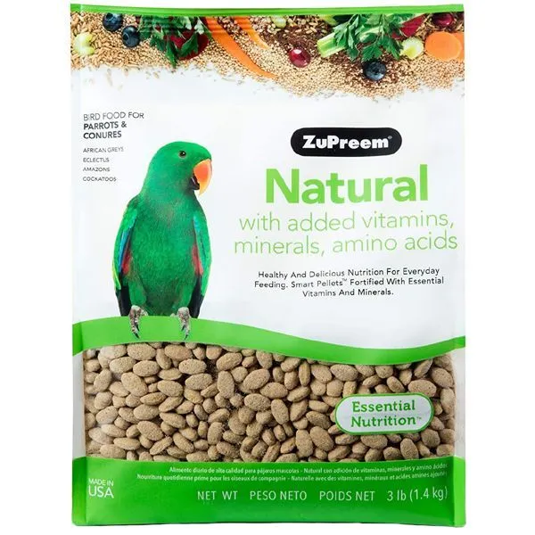 Natural pellets are bigger and too difficult to chew for Amazons.