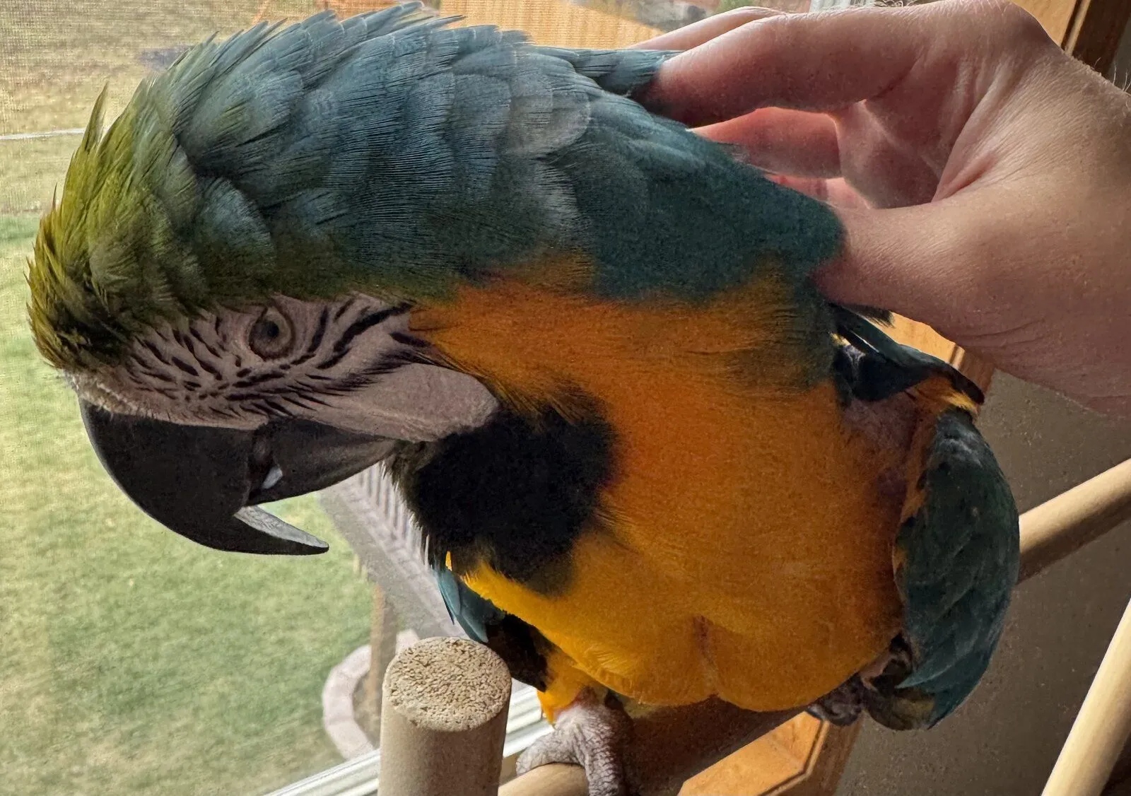 Blue is a male B&G! He’s a big baby… loves head scratches. There were several B&G’s available at the rescue I got Blue from. I couldn’t tell the difference in sex simply by the personality. My male screams a lot. He also gets very jealous when I’m handling my other parrots. I will say out of every parrot I’ve owned he’s the only one that actively try’s to challenge my dogs. Usually if my dogs walk by the cages of my other parrots there’s no reaction. Blue will go to the bottom of his cage, and bite the bars. If he could get to my dogs I honestly think he’d pick a fight.