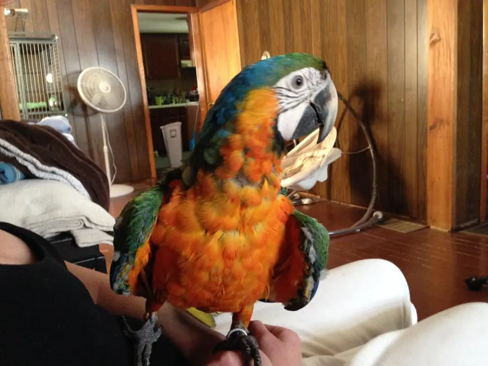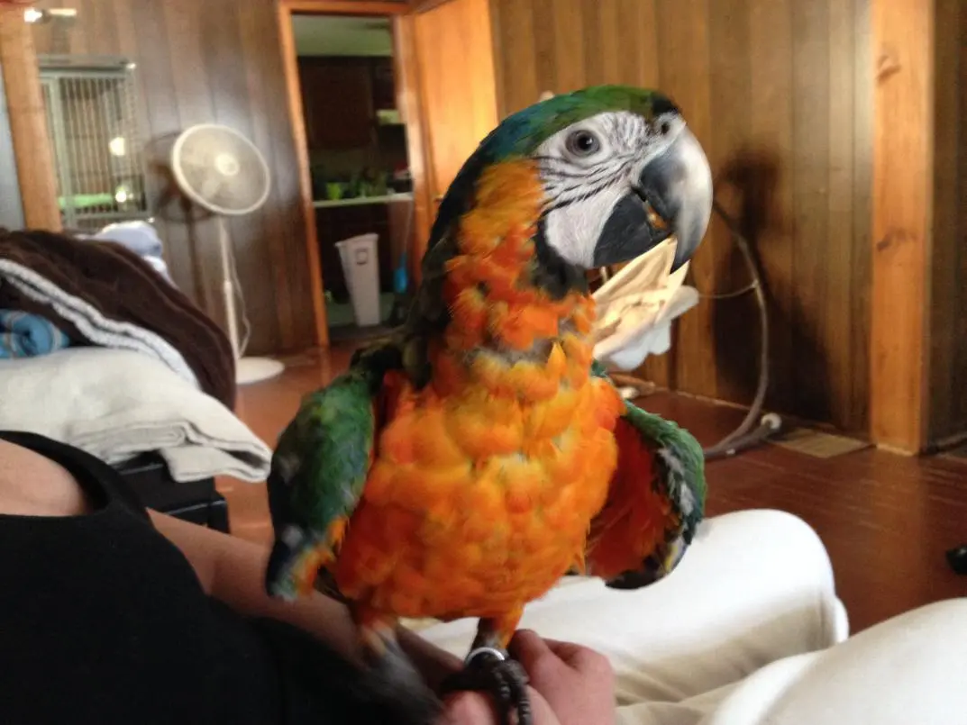 Thanks everyone....We have been shocked by how much of a lover he is, he is as cuddly as a puppy having grown up around my mothers' 2 B&G's it was nice to have a bird that isn't so stubborn not to say all B&G's are but George and Gracie were and always did their own thing as opposed to wanting to interact and play. I look forward to seeing how he matures over the coming years. It has been been a year since both my father and George passed away and it's funny our dogs remember George head pecking them I guess because they creep around his cage slowly like he is going to get them.