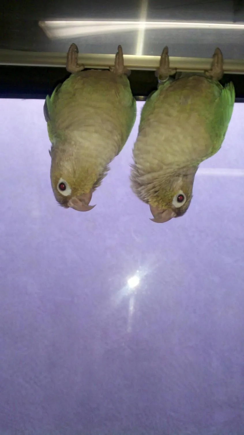 - Two Cinnamon Turquoise Green Cheek Conures;