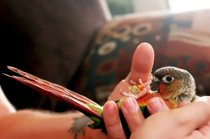 Here are some adorable pictures of my Yellow-sided Conure, Turtle