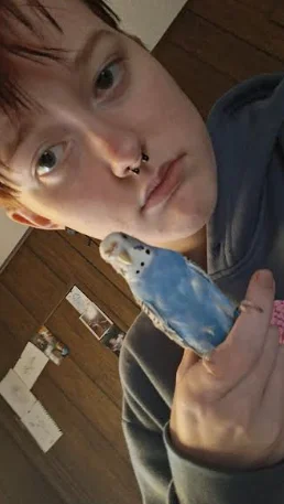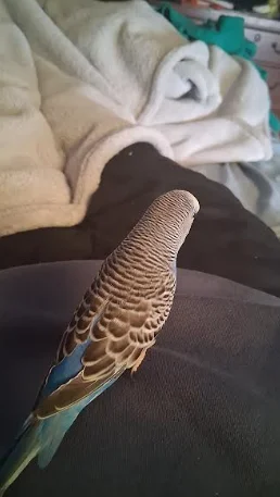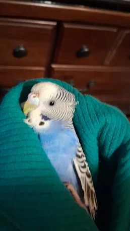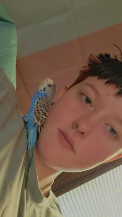 Pilot really did change my life, and she is definitely a challenge at times, and trust me, she keeps me busy. Although she still has a huge fear of hands she will sometimes sit on my chest and watch me play my game or watch my show with me. She seems to like my company despite her fear, she likes to sit in my hoodie, and sometimes when I'm cleaning she will come over and climb up my leg to get to my shoulder? Even though at this point her flight feathers have grown back, and she knows that because she flies around my room. When she does climb up my leg tho I keep my hand nearby in case she falls. She preens me all the time especially the back of my head where my head is shaved, she seems to like that the most, she also plays with my earrings sometimes. She seems to like to do things with me and to feel included, she has sat on my shoulder while I've vacuumed, and even when I'm doing my own things and shes out of her cage, she will either sit somewhere where she can see me, or she will fly over occasionally and check on me. And she does sit on my hands sometimes, like without the shirt, but its very rare when she does, I make sure to try to get a photo each time. She has made a big impact on my life, and I'm glad that I have her. She really is amazing. One of my favorite things that she does, is when i'm filling her food bowl she will go and sit on the metal piece that holds her bowl, and she will just sit there and watch me.