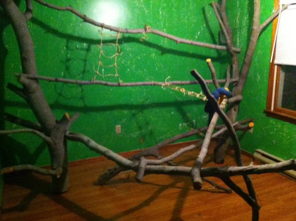 Decided to make Micky, our Blue and Gold Macaw, her own play room from a spare bedroom. Still needs some toys but for now it gives her a place to stretch her beautiful wings. We have had her for 3 weeks and we don't think she is spoiled.