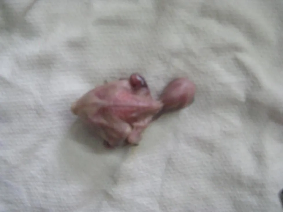 looks like internal bleeding. right wing is so deep red and bloated. same with one leg and the throat area...