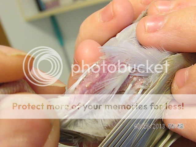 Are there pin feathers on her chest? Usually with that many feathers missing you should have alot of pin feathers in that area, but doesn't look like there are? :/