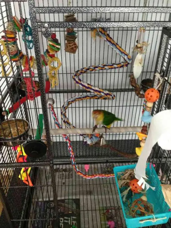 He does have a rope perch we just like to 'pimp his cage' regularly to change the set up and toys etc so it's not in there at the moment. The wood ones I'll have to get at the shops today to make his new levels.