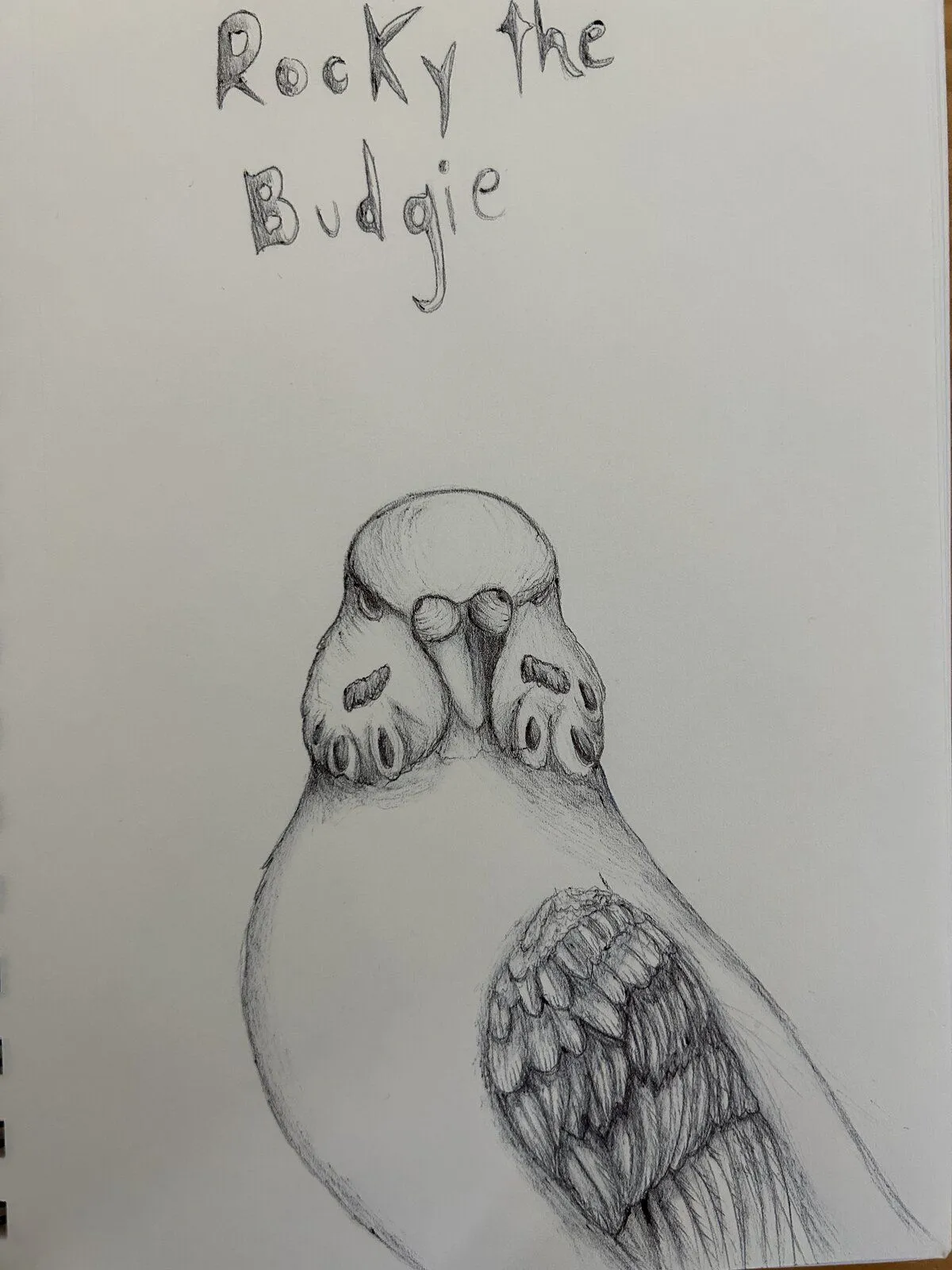 Thank you!! Glad you’re happy with it!The more I look at your drawing of Rocky the more I am amazed at your talent. Its not just a drawing of a budgie- its distinctly Rocky, from the poofed up head feathers that partially hide his (actually HER) eyes giving her a hawk-like stare, to the barely visible barring on her forehead, to the detailed feathering in her mask. Many people can draw "a budgie" but few people can capture the individuality of a particular budgie like my Rocky. It's quite a talent and you should be very proud of yourself.
