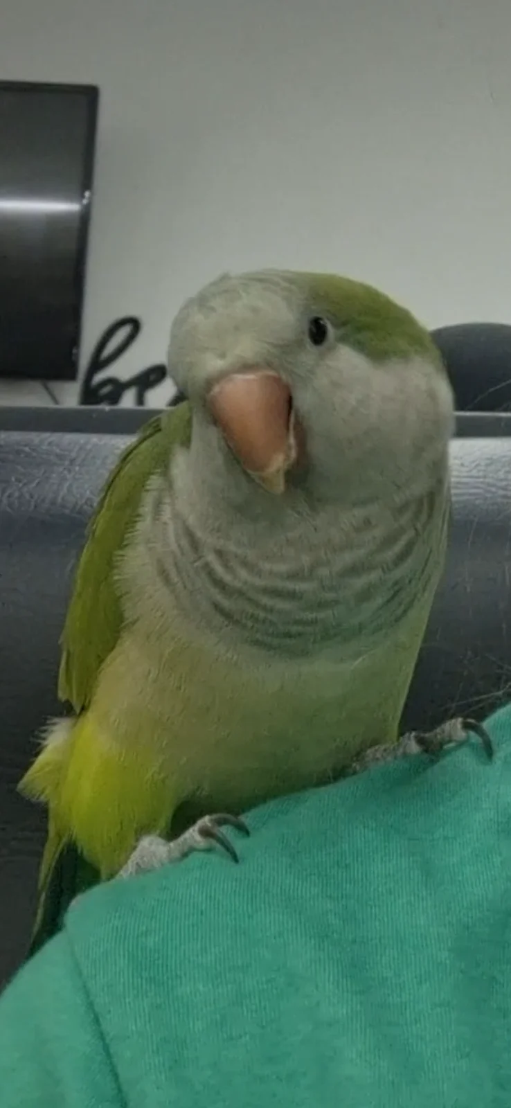 I named him Guava since he's green and guava fruit comes from South America-the same place the quaker species is from