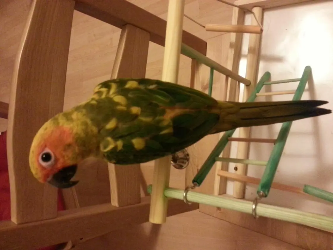 I have been told that sun conures should be mostly yellow by 8 months, however, with Baby I am pretty sure this won't happen by then. I was really excited to finally be seeing Baby get her adult feathers but with this occurrence I have been a bit disappointed that he/she might be staying green for another 6 months or so until the 2nd molt cycle hits.