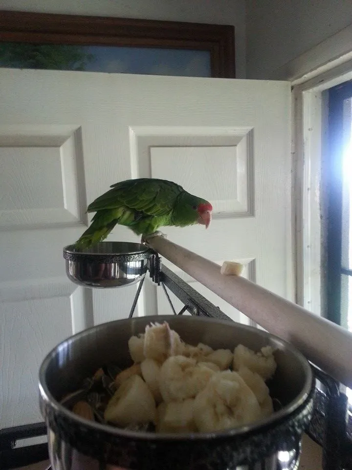 It was a handfed amazon parrot... first day I took it home it didnt eat till the next day... gave me a scare... as they had told me it was already eating on its own for 3 weeks... The Birds use to eating nothing but sunflower seeds and peanuts... a Parrot mix called Royalty Feed... I did some research before I bought the bird everybody recommends a Pellet diet so Ive mixed it in with the food its currently use too but im not seeing much progress it picks out the sunflower seeds before the pellets.. I bought RoudyBush Pellets. That's the first issue im having with it since I would like to train it but I dont know how to reward it if its already eating sunflower seeds. Second ... Ive chopped up a variety of fruits put it in a different bowl... and it just licks it but doesnt take it. Only thing so far it seems to kind of chew on is dried fruits from the sungrow treat bag, chews a little then drops it.