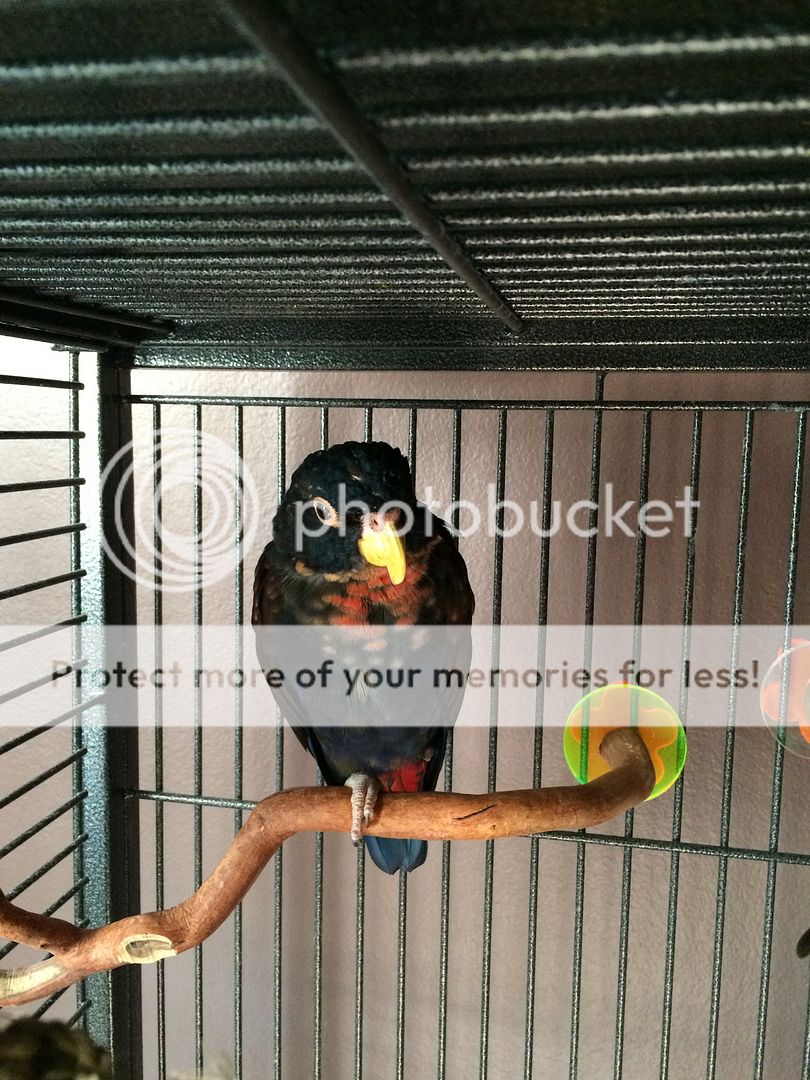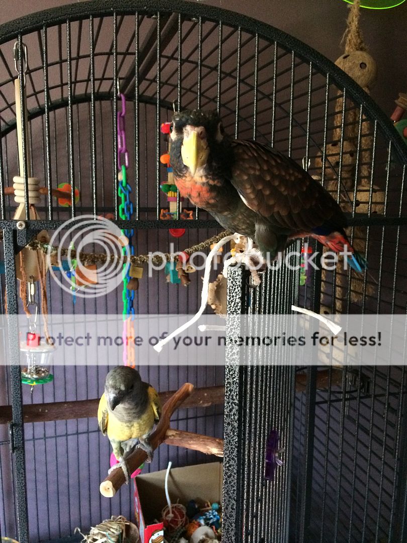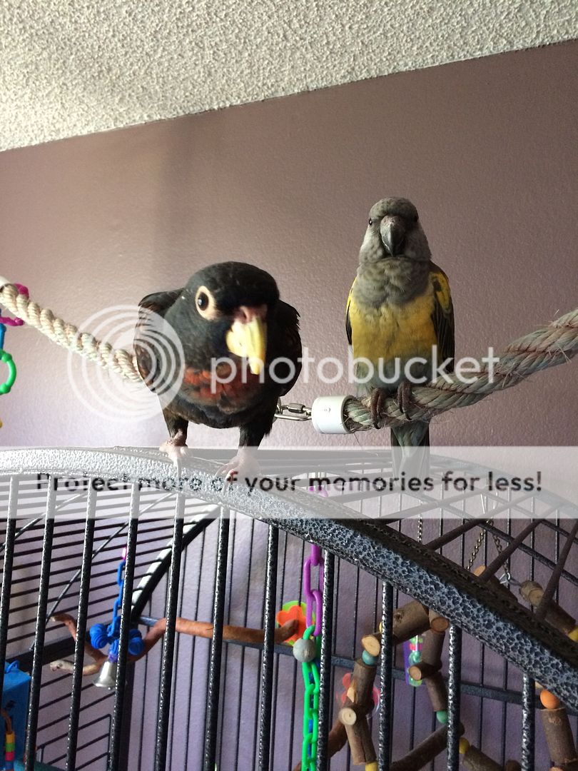 Two of my birds are juveniles, and are of species who undergo a color change as they mature. They aren't sexually mature yet, and probably won't be for at least a couple more years, but they are having their first big molt. I thought I'd do before and after shots. They're not quite "finished" with the color change, but enough to see a big change.