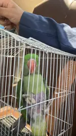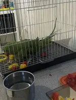 Hi guys I previously posted this thread ^^ and I did end up going to the fair today. I found no African greys but I did end up finding a very scared indian ringneck which looked very distressed and plucked a lot of its feathers out. My intention in getting another bird was to rescue one so I bought this one. It appears to be a female I believe based off what i read, since it lacks a ring (correct me if I'm wrong). As you can see in the attached pictures I gave it some fruit which she took from my hand but she is absolutely terrified of me and shakes while taking the food from me. Right now she ate a bunch of fruit and it just sitting quietly on the bottom of the cage staring at me. (Disclaimer: I will be buying her a new, big cage tonight, the little one in the pics was just to bring her home). Hoping to take her to the vet today or in the new few days as well. Any advice on how ease her fears and get her to eat and drink properly and any advice in general about taking care of indian ringnecks? I never in my life ever thought I would adopt one of these so I honestly never researched and looked into them so any advice at all will be much appreciated. Thank you.
