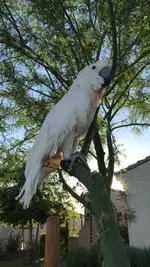 Asking a rehoming fee of $1300, will come with large beige parrot cage, toys, treats, and year supply of food.