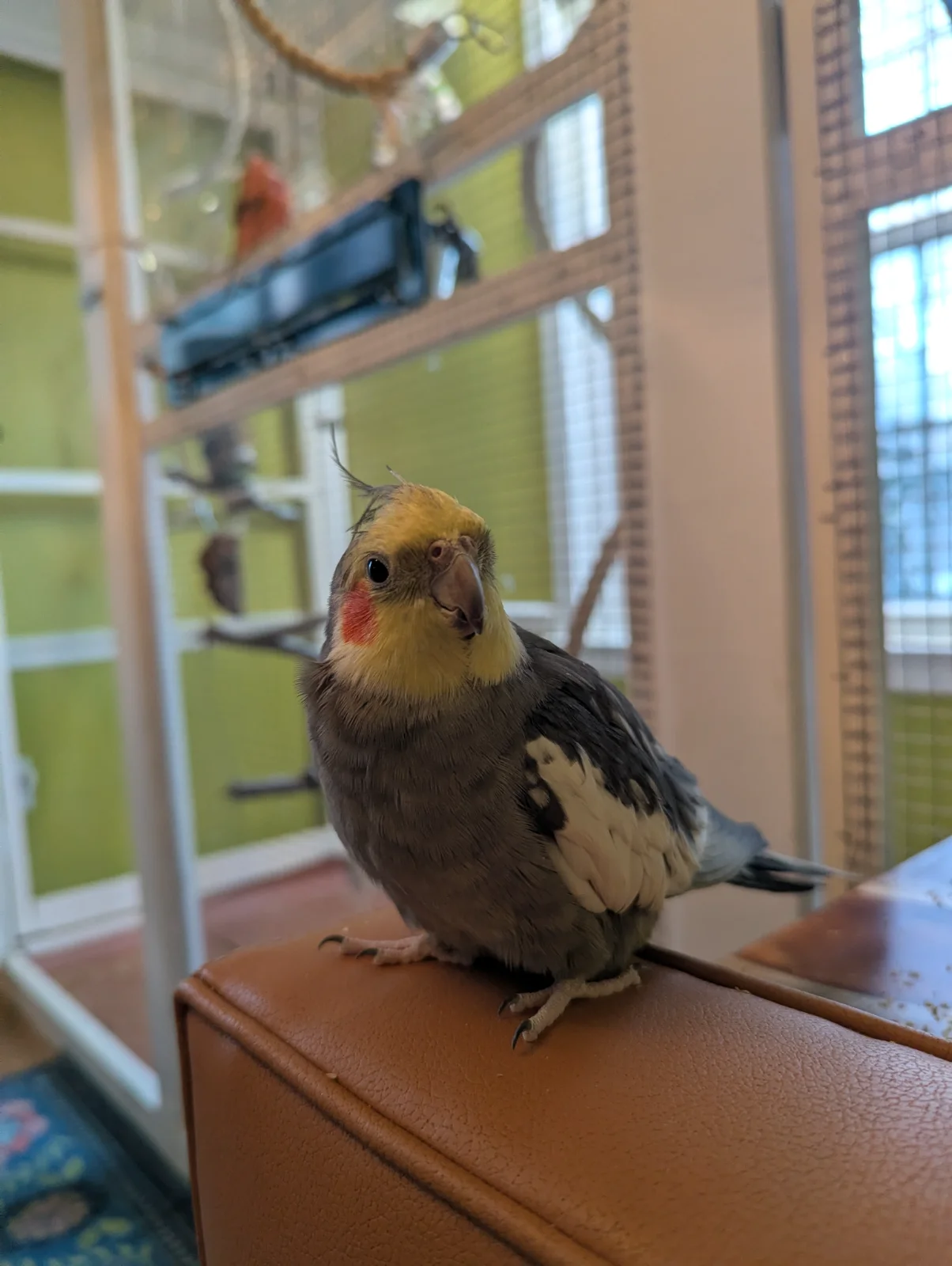 That is so traumatic! I learned that this week after ten awful minutes of not knowing where Juliette was. I'm glad her tail sticks out a good ways though!Wheres the budgie?