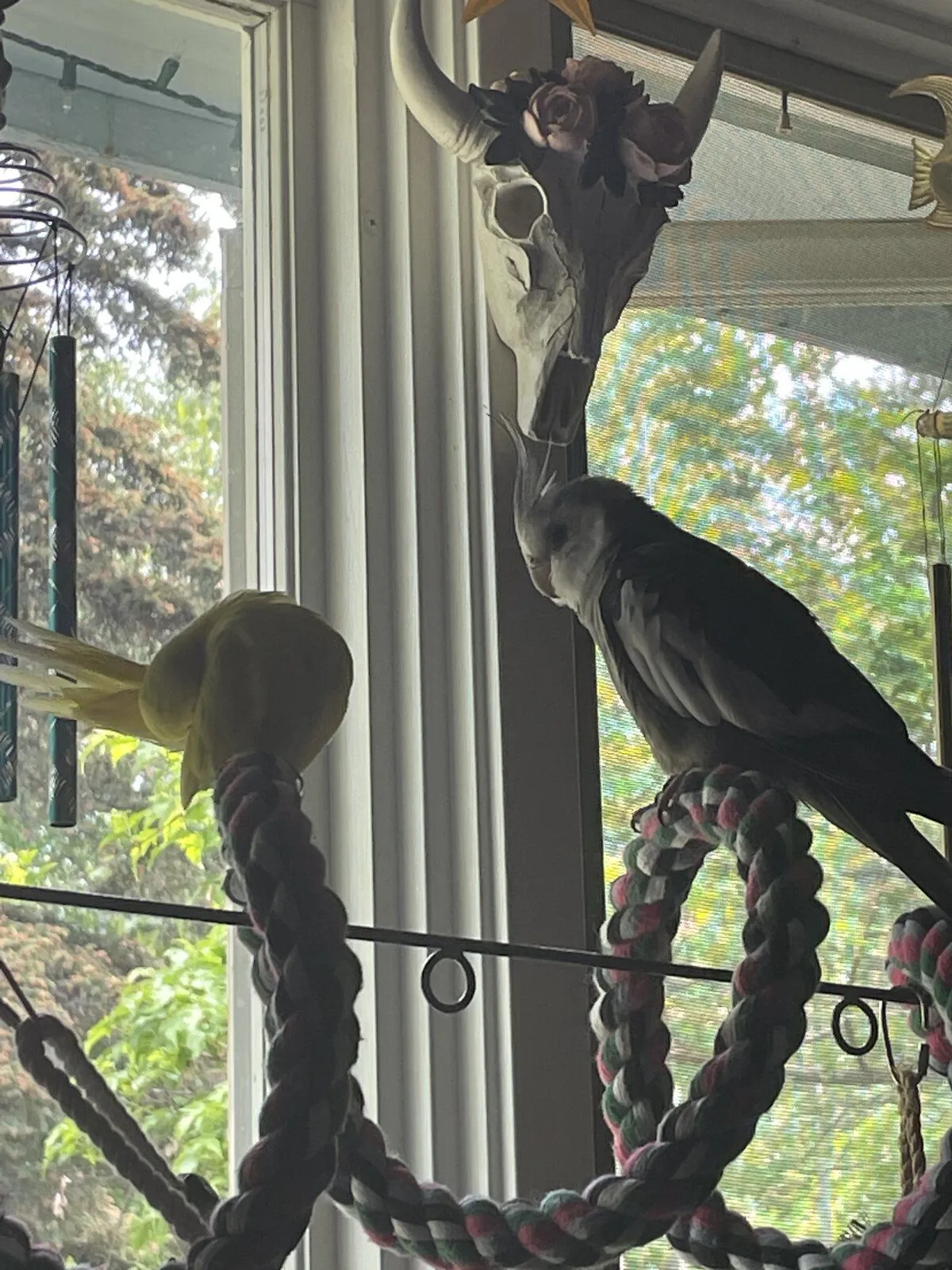 You know a bird is happy, relaxed and comfortable in his new home with his new people when he can snooze so close to you!I’m new to the party. Kokkie has just begun feeling safe enough to sleep near us. Love her so. Her fave spot on the chair next to me hence many pics from this angle.