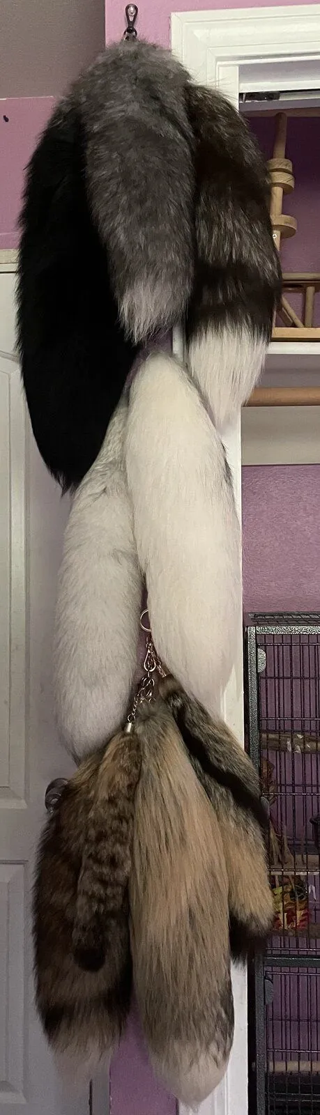 Thank you! They are professionally done and I provide the proper care for them to keep them in good shape! Brushing, keeping them far from water, making sure my room isn’t too humid, making sure they don’t collect dust, keeping the chains away from water, etc.Wow! Very nice tails! Are they professionally preserved or did you do it yourself?