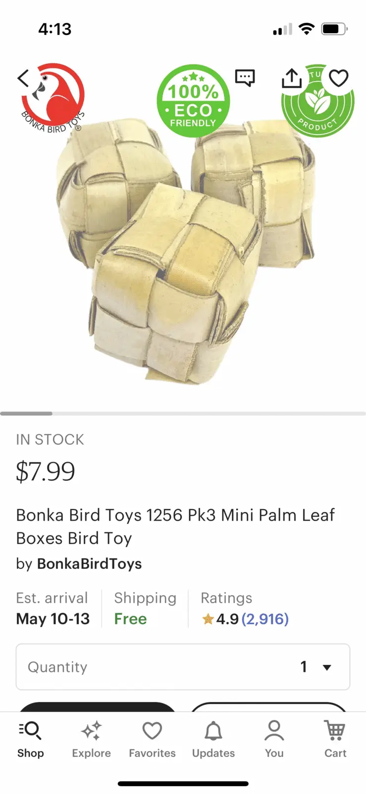 Cozy recently fell in love with a Bonka Bird sneaker (it’s a shredding toy). Unfortunately, she seems to be one of those birds that instead of tossing the thing she is shredding out of her beak, she eats it. Thankfully I caught this habit as I was supervising her so she only got a teeny piece. So my question is, does anyone else’s budgie eat their shred toys? Is their an alternative shred toy anyone knows about that is actually edible?