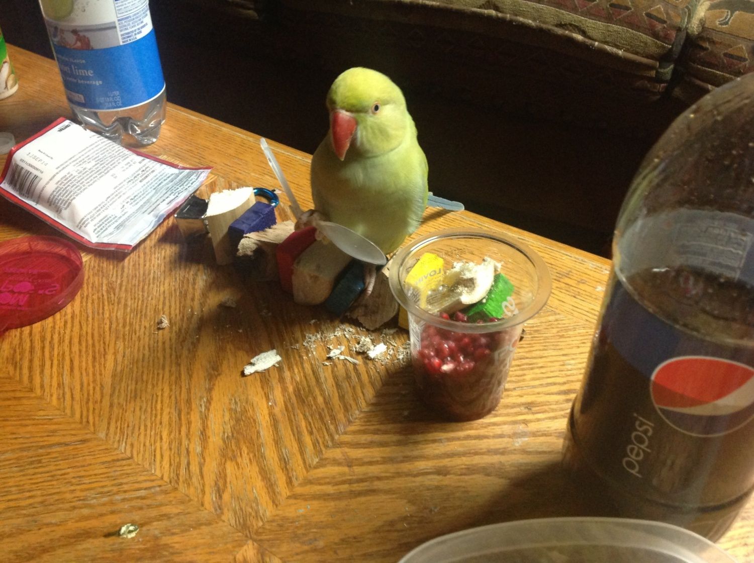 - Kiwi : Indian Ringneck Parrot RIP, taken far too young, Mango : Lovebird, 5 years old 2014, Sprite : Pineapple green cheek, <1 2014