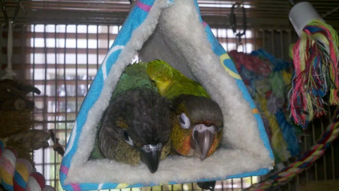 I have a 9 month old green cheek and notice that he sleeps either on the perch or by hanging on the upper backside of the cage. I bought one of those tents because I hear others say that the conures love sleeping in them. Mine won't go near it. What's normal?