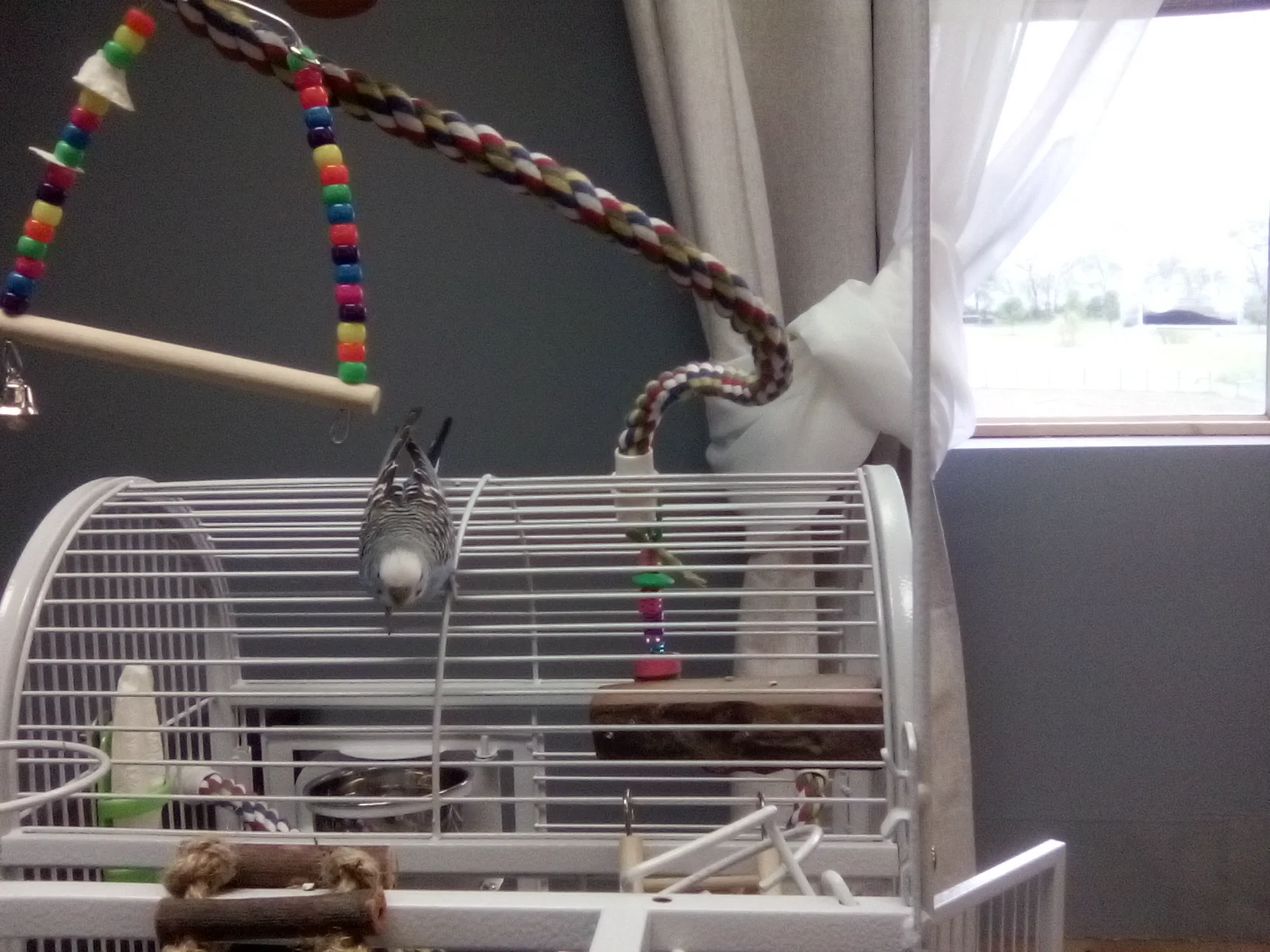 Ollie's been kind of quiet and missing his bird feeder buddies so I went and got a stick on window feeder to hopefully attract some bird friends. I put it up and he came out and started calling and flying around. How does he know?? There haven't been any birds yet!