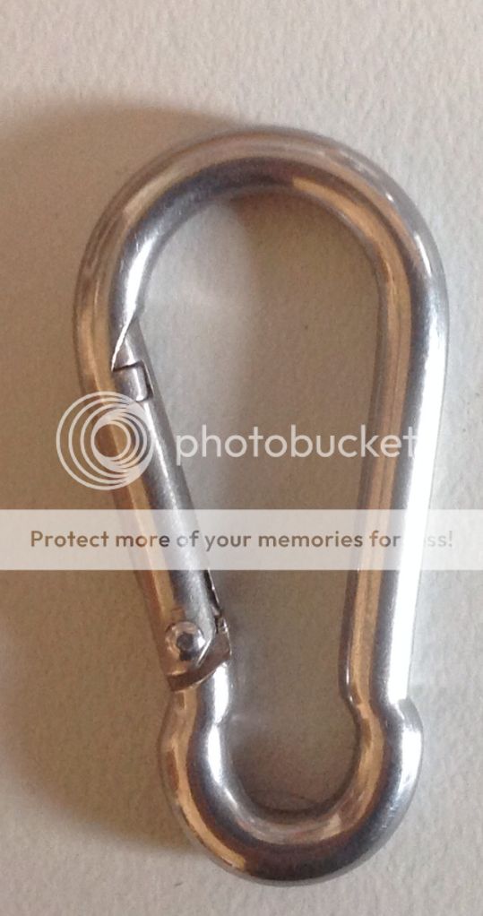 I was watching him do his usual morning acrobatics, upside down playing with his foraging ball, which is hanging from another toy, I was laughing away at him, when he managed to get his ankle caught in the bottom loop of this Snap Hook. He had basically put his leg though all the way, and then slipped his leg down into the bottom loop. As he pulled back his joint was not able to fit through the loop at the bottom.