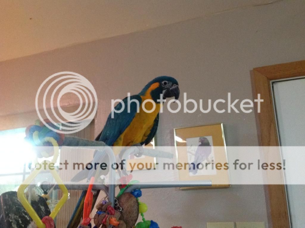 I've been putting off posting the bad news as I wanted to get my emotions in better control. Earlier this month, the 14th to be exact. My recently acquired feathered friend, Apollo the three month old DYH Amazon passed away in my arms..
