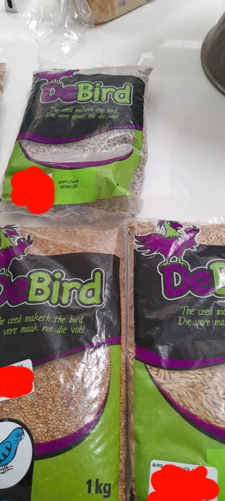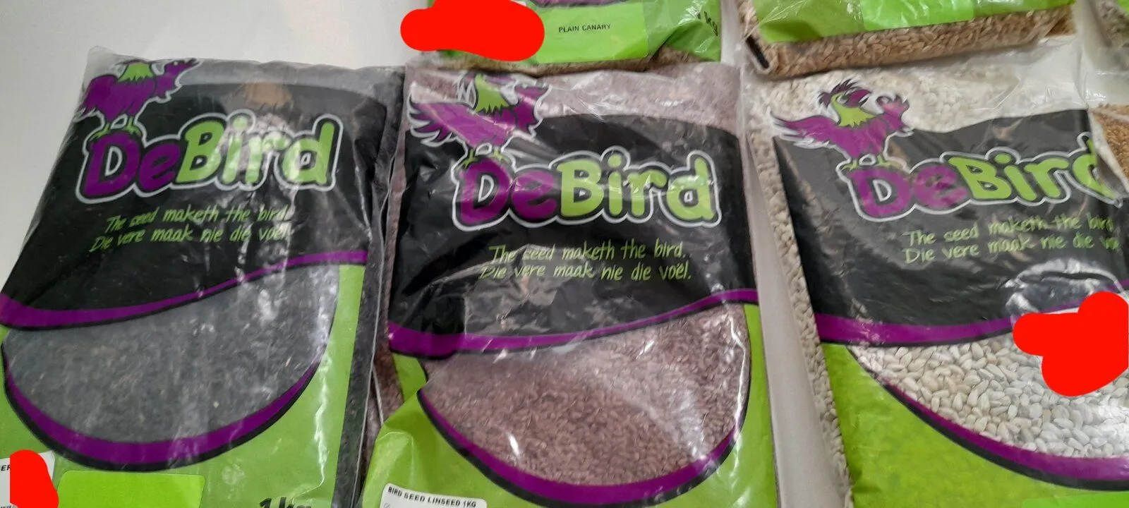 Linseed, niger, canary, wheat, dehulled sunflower, safflower, budgie seed(millet), oats groats.