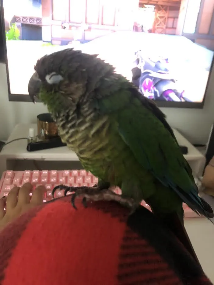 Do your parents cook with teflon pans? Teflon releases fumes that us as humans don’t detect but it can kill a bird quite quickly. Especially if something is burnt while cooking with them. When I got my green cheek Mojito I replaced all of my pots and pans with copper coated ones because I read stories of peoples birds dying and had symptoms much like your Yuka did.hey everybody. my green cheeked conure has been fine, but today i noticed she was acting weird. she usually doesn't like to be picked up but today she was letting me do it as much as i want. she couldn't hold on to the fabric of my clothes like usually or even stay on my head or shoulder correctly because he kept slipping and losing her balance. one of her eyes is closed but it doesn't look swollen or anything. her feet are also kind of limp? she sort of feels lighter but i'm not sure. i'll attach a picture here. thank you for any help.View attachment 30291